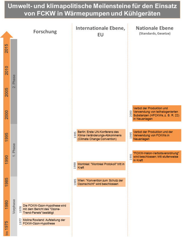 Abbildung 1: Umweltpolitische Meilensteine für den Einsatz von FCKW in Wärmepumpen und Kühlgeräten